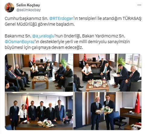 Bakanımız Sn. Abdulkadir Uraloğlu’nun önderliği, Bakan Yardımcımız Sn. Osman Boyraz’ın destekleriyle yerli ve milli demiryolu sanayimizin büyümesi için çalışmaya devam edeceğiz." ifadelerine yer verdi.