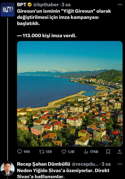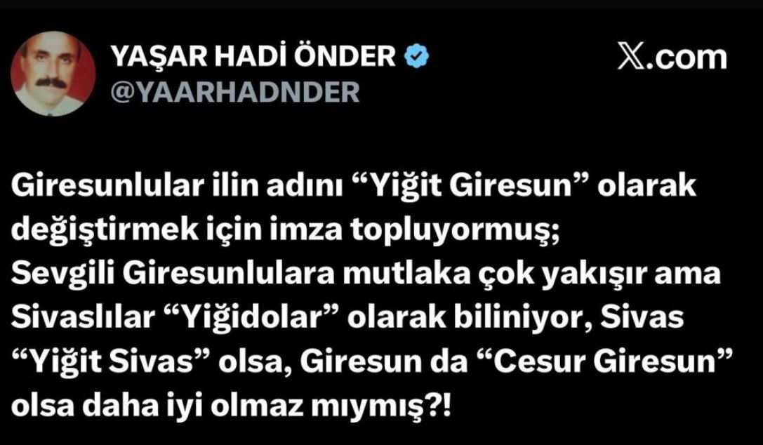 Ancak kampanya, “Yiğido” unvanıyla özdeşleşen Sivas’ta farklı bir yankı uyandırdı. Sosyal medyada çok sayıda Sivaslı kullanıcı, Giresun’un “Yiğit” unvanı talebine tepki gösterdi.