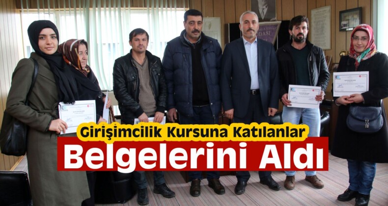 Şarkışla ilçesinde düzenlenen girişimcilik kursuna katılanlar belgelerini aldı.