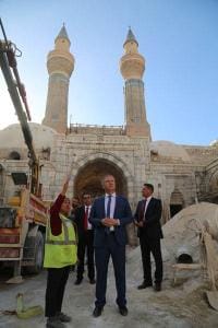 Sivas Valisi Davut Gül, Vakıflar Genel Müdürlüğü tarafından restorasyona alınan Selçuklu eseri Gök Medrese'de incelemelerde bulundu.
