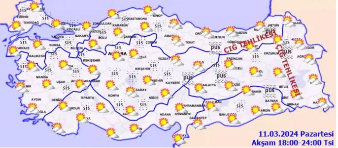 Doğu Karadeniz’in iç kesimleri ile Doğu Anadolu’nun kuzey ve doğusunun kar örtüsüne sahip eğimli yamaçlarında çığ tehlikesi bulunduğundan dikkatli ve tedbirli olunmalıdır.