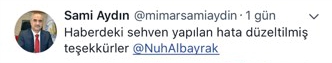 Resmin kaldırılmasının ardından Belediye Başkanı Sami Aydın sosyal medya hesabı üzerinden "Haberdeki sehven yapılmış hata düzeltilmiş teşekkürler NuhAlbayrak" mesajıyla teşekkür etti.