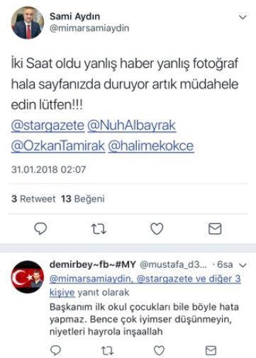 Sosyal medyada gerçekleşen bu duruma tepki mesajları atılırken, Star Gazetesi Belediye Başkanı Sami Aydın tarafından sehven yapıldığı söylenen hatayı 12 saat sonra düzeltti.