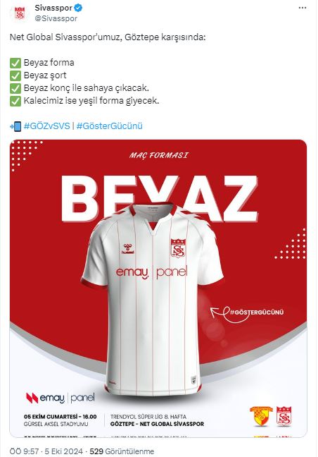 Sivasspor saat 16'da başlayacak müsabakaya beyaz forma ile çıkacak.