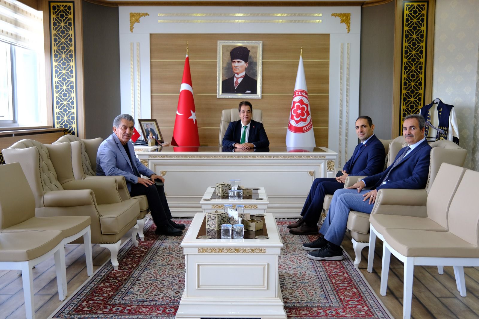 Büyük Sivas TV Gündem Futbol programı moderatörü Abdullah Yiğit ve yorumcularımız Spor Bilimleri Fakültesi Antrenörlük Eğitimi Bölüm Başkanı Prof. Dr. Mustafa Kaya ile Murat Çetintaş, Cumhuriyet Üniversitesi Rektörü Prof. Dr. Ahmet Şengönül'ü ziyaret etti.