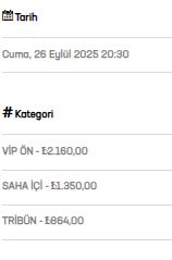 • VİP Ön: 2.160 TL