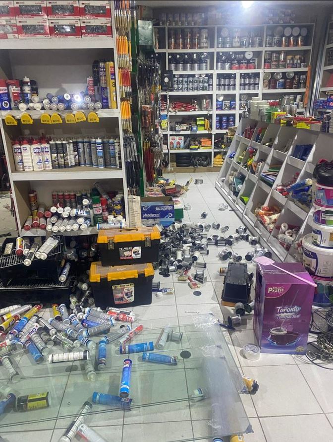 Atatürk Caddesi'nde ise Mehmet Şakar'a ait nalbur dükkanında deprem nedeniyle bazı malzemeler yere döküldü, camlar kırıldı.