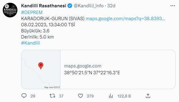 Kahramanmaraş ve çevresindeki 9 ilimizde yaşanan iki büyük depremin artçı sarsıntıları devam ediyor. Kandilli Rasathanesi verilerine göre saat 13.34'de Sivas Gürün'de 3,6 büyüklüğünde deprem yaşandı...