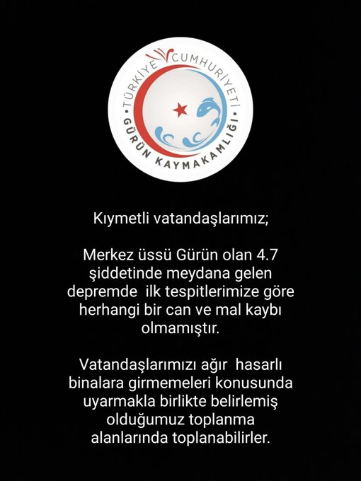 Gürün Kaymakamlığı sosyal medya hesabından az önce Sivas’ın Gürün İlçesinde 4.7 şiddetinde meydana gelen ve ara ara devam eden artçı depremlerle ilgili sosyal medya hesabından açıklama yaptı.