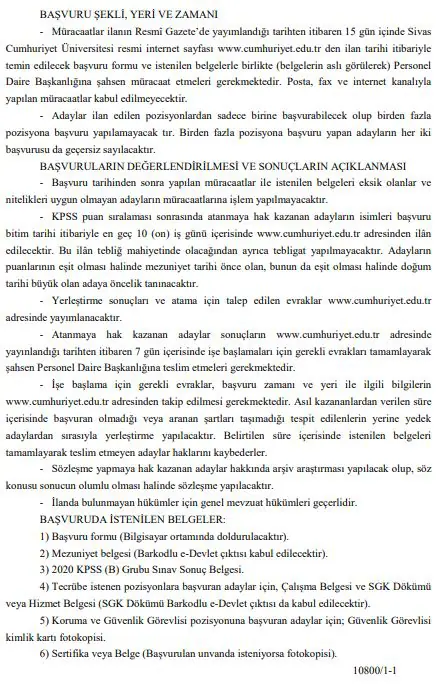 Sivas Cumhuriyet Üniversitesi sayfasından duyuru yaparak yazılı ve sözlü mülakat yapılmaksızın sözleşmeli personel alacağını açıkladı.