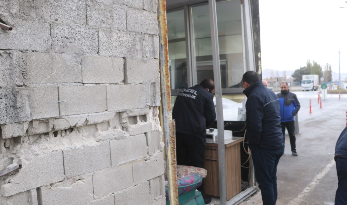 Sivas’ta kamyonun çarptığı güvenlik kulübesinde maddi hasar oluştu.