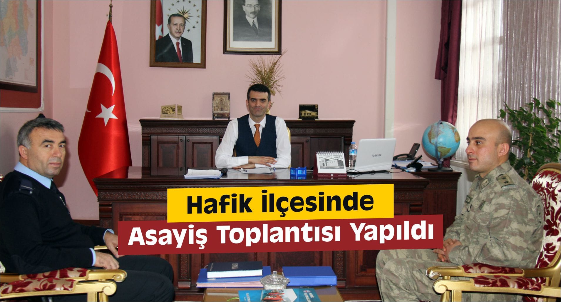 Hafik Kaymakamı İdris Arslan'ın makamında düzenlenen toplantıya, İlçe Jandarma Komutanı Üsteğmen Halil Korucu ve İlçe Emniyet Amir Vekili Başpolis Murat Arslan katıldı.