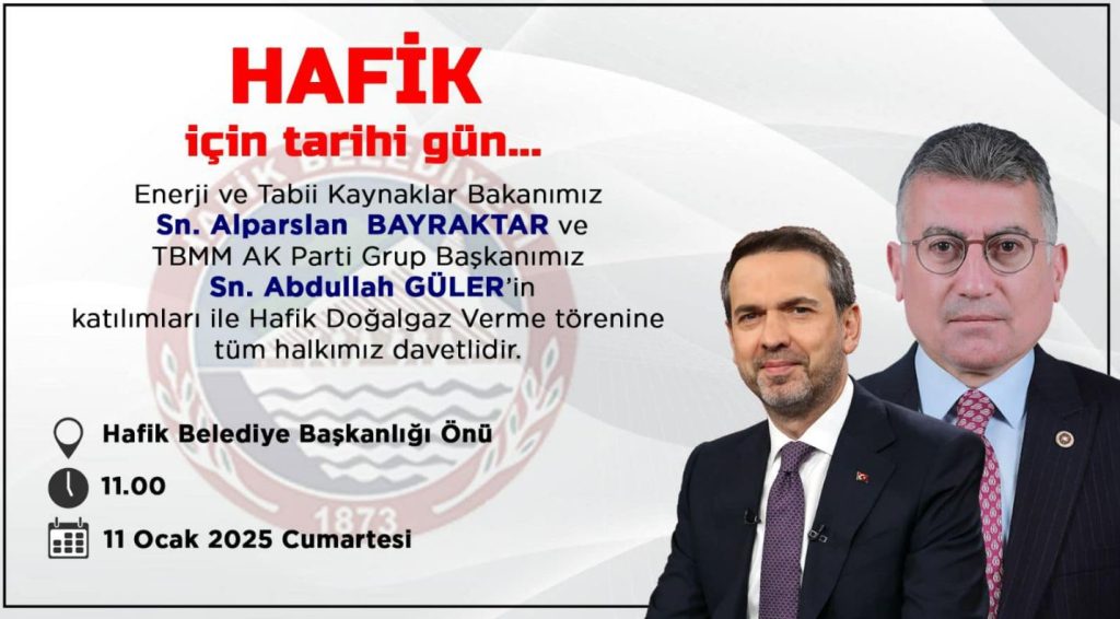 Enerji ve Tabii Kaynaklar Bakanı Alparslan Bayraktar ile TBMM AK Parti Grup Başkanı Abdullah Güler’in katılımıyla Hafik ilçesi için tarihi bir gün yaşanacak.