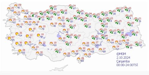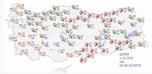 Cumartesi günü 32-33 derecelerde seyretmesi beklenen hava sıcaklığı, hafta başı yağışlı havanın etkisiyle 15 derece birden düşecek.