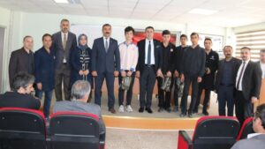 Meslek Lisesi öğrencilerin sorularını da cevaplandıran Sivas Esob Başkanı Hakan Demirgil, derslerinde başarılı olan öğrencileri de ödüllendirdi.