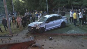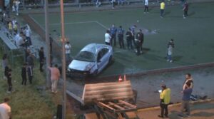 Kaza sırasında halı sahada bulunan gençlerden biri, “Biz burada maç oynuyorduk. Adam burada el frenini çekti. Belki 100-120 ile geliyordu.
