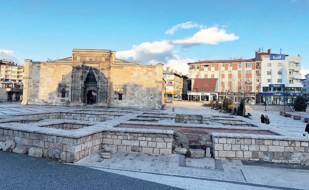 The Turkish bath, which was unearthed after the excavations around Izzeddin Keykavus I Darü’ş-Şifası (an old word for hospital) between 1961 and 1963, has a rectangular plan in the direction of east-west. The walls of the bath which reached the present day are approximately 1.50-meter height. Currently, the bath has a changing room, lukewarm section and in parallel to them a hot section and water reservoir to the south. Besides, there are many marble bath basins inside the building.