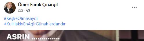 Hamza Yerlikaya'nın Milli Bayrağımızı dalgalandırdığı fotoğrafını "ASRIN ........" sı yazarak paylaşan Çınargil'in edep sınırlarını aştığı çok sayıda takipçisi tarafından yazılsa da Çınargil'in oralı olmadığı gözlendi. Paylaşımında ki ".............." kısmında ne demek istediğini Çınargil'in yüreği yetiyorsa yayınlaması bekleniyor.