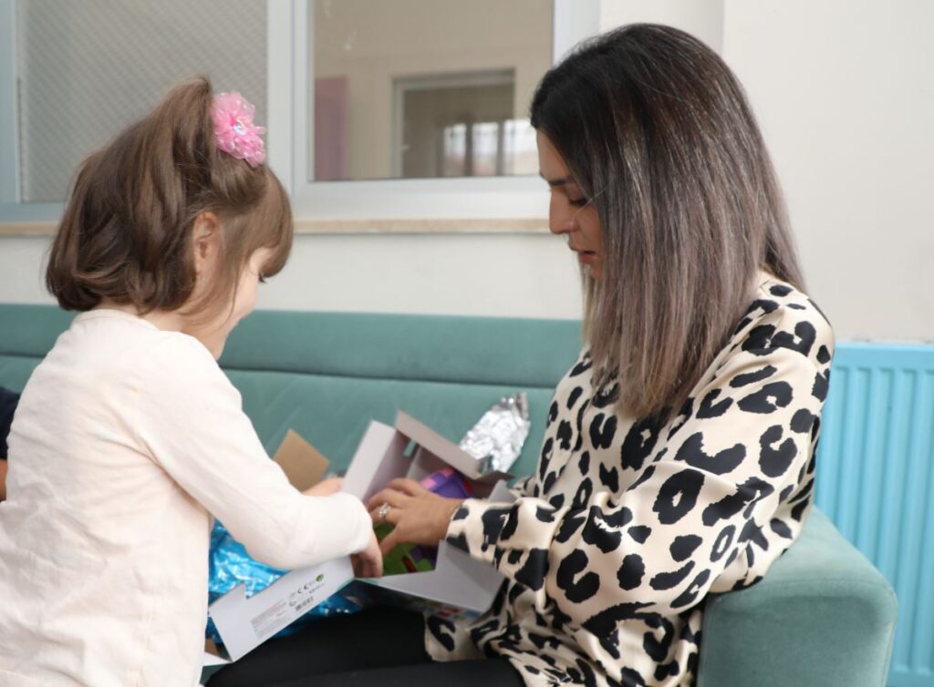 Aile ve Sosyal Politikalar İl Müdürlüğü'ne bağlı Sevgi Evlerinde değişik yaş grubundaki çocukları ziyaret eden Çiğdem Şimşek çocuklarla yakından ilgilenirken, yetkililerden de çocuklar hakkında bilgi aldı.