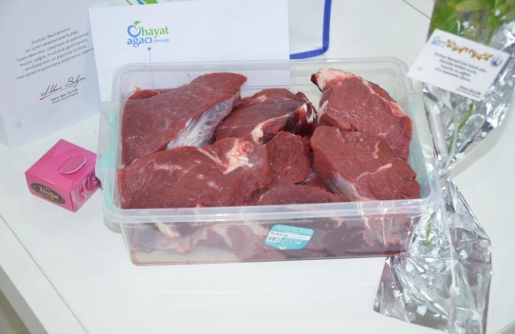 Kurban hissesi bağışlayan hayır sahiplerine bayramın ikinci günü dernek merkezinden 5’şer kilo pay verildi. Ayrıca Kurban Bayramı süresinde kurban kesen hayır sahipleri, Gıda Bankasına getirdiği paylardan 1 ton et elde edildi. Küçükbaş, büyükbaş ve pay sahiplerinin bağışlarıyla sağlanan etler, Hayat Ağacı Derneği derin dondurucularında muhafaza edilerek yıl içinde ihtiyaç sahiplerine dağıtılacak. (İHA)