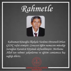 Şarkışla ilçesinde bulunan Kahraman Köseoğlu İlkokulu'nun Personel Yardımcılığı görevini yapan eğitimci Orhan Genç hayatını kaybetti.
