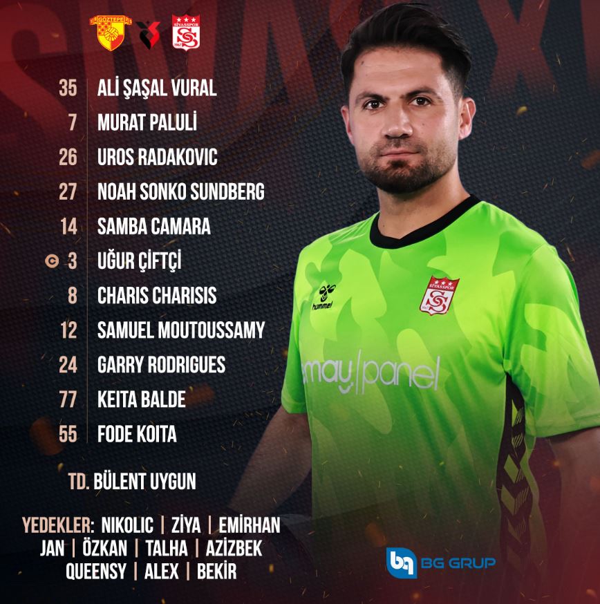 Göztepe'nin Sivasspor karşısındaki ilk 11'i ise şöyle..