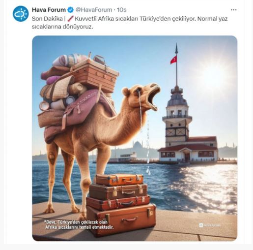Paylaşımda, "Kuvvetli Afrika sıcakları Türkiye'den çekiliyor. Normal yaz sıcaklarına dönüyoruz." ifadeleri kullanıldı.