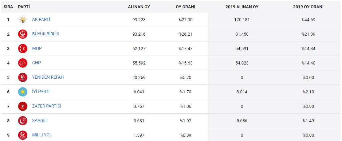 Ayrıca BBP, 500 İYİ Parti'den, 500 Saadet Partisi'nden, 300 DEVA'dan, 120'de Milli Yol Partisi'nden oy aldı...