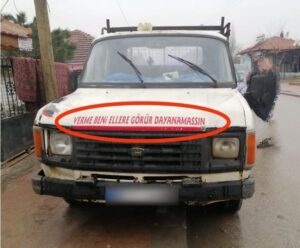 Suçta kullandıkları kamyonetin önüne belirgin bir ifadede yazdırarak, kendi sonlarını hazırlayan hırsızlık şebekesinin üyeleri arasında olaydan sonra yaşandığı ortaya çıkan tartışma ise duyanları gülümsetti.