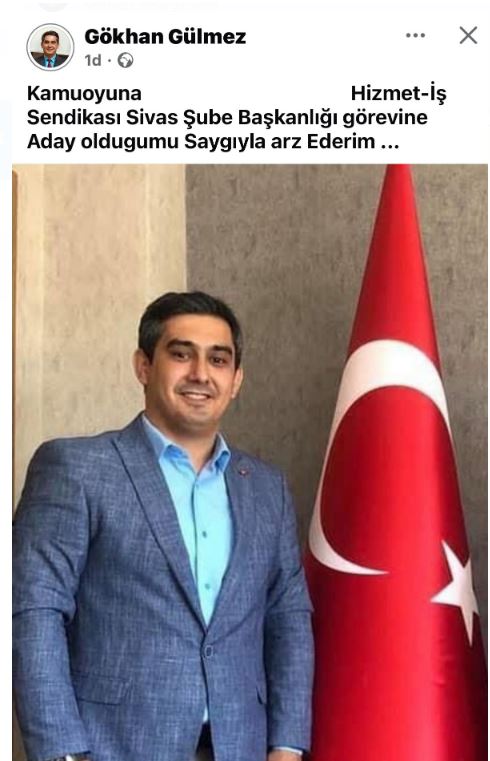 Sendikanın 13 yıllık üyesi Gökhan Gülmez, sosyal medya hesabından yaptığı duyuruyla Sivas Şube Başkanlığı görevine aday olduğunu açıkladı.