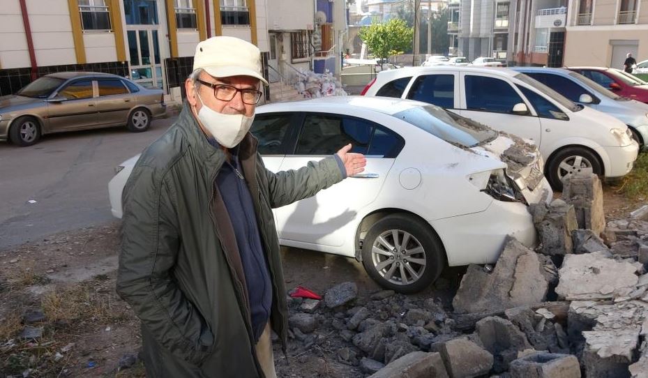 Mahalle sakinlerinden Ahmet Koşaroğlu “ Gece düştüğünü zannediyorum, çünkü sabah kalktığımızda aracın üzerinde duvar kalıntılar vardı. Daha önceden burada metruk bir bina vardı. O bina yıkılınca bu duvarlar kaldı. Muhtemelen gece bir yer hareketi olmuş olabilir diye düşünüyorum ama emin değilim.