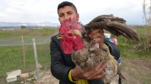 Manavgat’ta sahibinin kesmek için yakaladığı horoz, bıçağı görünce önce Allah, ardından da Anne diye bağırmaya başladı. Horoz’un çıkardığı sesler karşısında şaşkına dönen sahibi, elindeki bıçağı ve horozu bırakıp kesmekten vaz geçti. Ali Dibek’e ait 2 yaşındaki horoz, diğer horozlar gibi ötmek yerine tavuklar gibi sesler çıkarıyor.