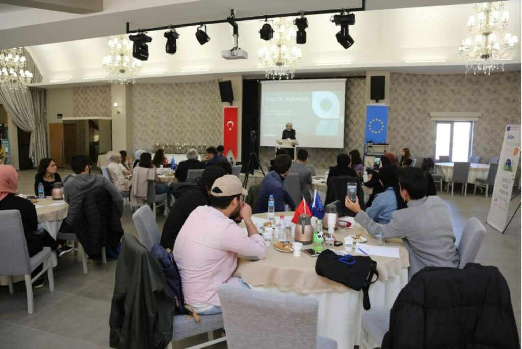 Sivas TSO Çok Amaçlı Salonda gerçekleştirilen ve İklim ve gençlik forumuna Sivas Cumhuriyet Üniversitesi akademisyenleri Doç. Dr Murat Tokrası, Doç Dr. Sefer Darıcı Dr. Selçuk Yasin Yıldız ve Dr. Kürşad Özkaynar’ın moderatör olduğu programa Sivas Cumhuriyet Üniversitesi öğrencileri katıldı. AB Türkiye Gençlik Forumunda katılımcı gençlerin çözüm önerilerini içeren rapor Avrupa Birliği Türkiye Delegasyonuna sunulacak.