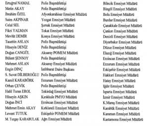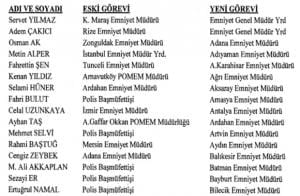 Bu kapsamda toplam 33 ilin Emniyet Müdürleri Polis Başmüfettişliğine atanırken, 24 Daire Başkanı merkeze, 31 daire Başkanın ise il ataması yapıldı.