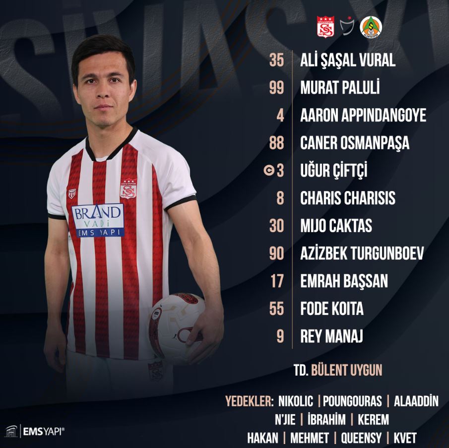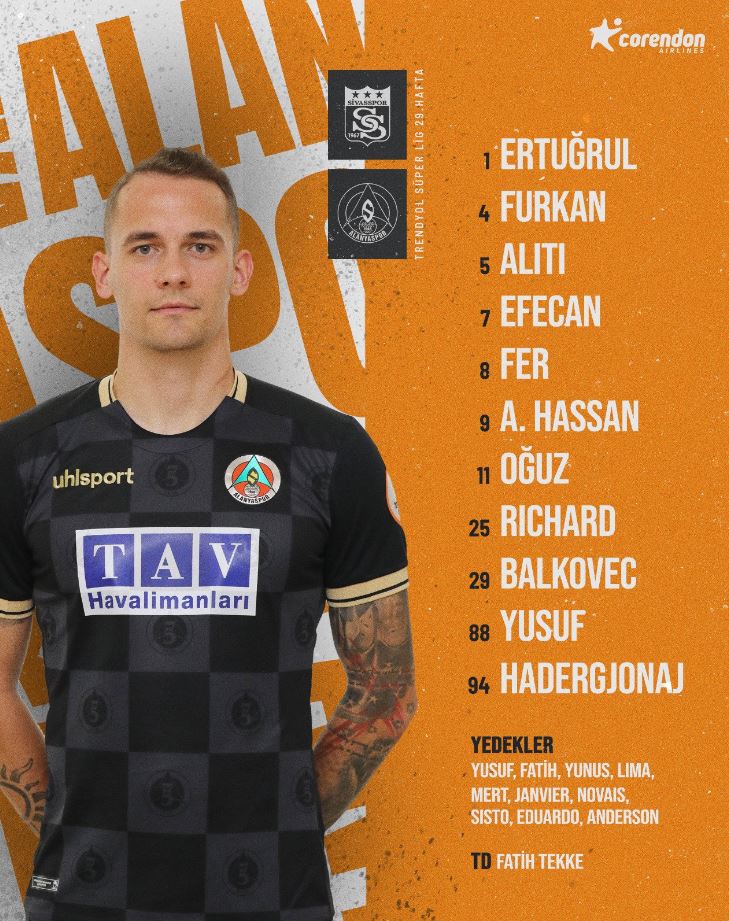 Alanyaspor : Ertuğrul , Balkovec, Aliti, Furkan, Hadergjonaj ,Richard, Fer, Efecan, Yusuf, Oğuz , Ahmed Hassan