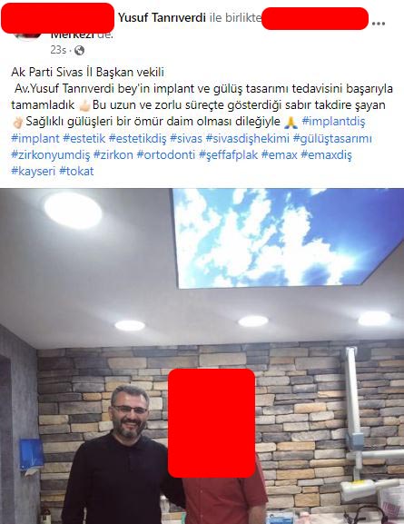 AK Parti Sivas İl Başkan Vekili Avukat Yusuf Tanrıverdi'nin implant ve gülüş tasarımı tedavisi başarıyla tamamlandı.