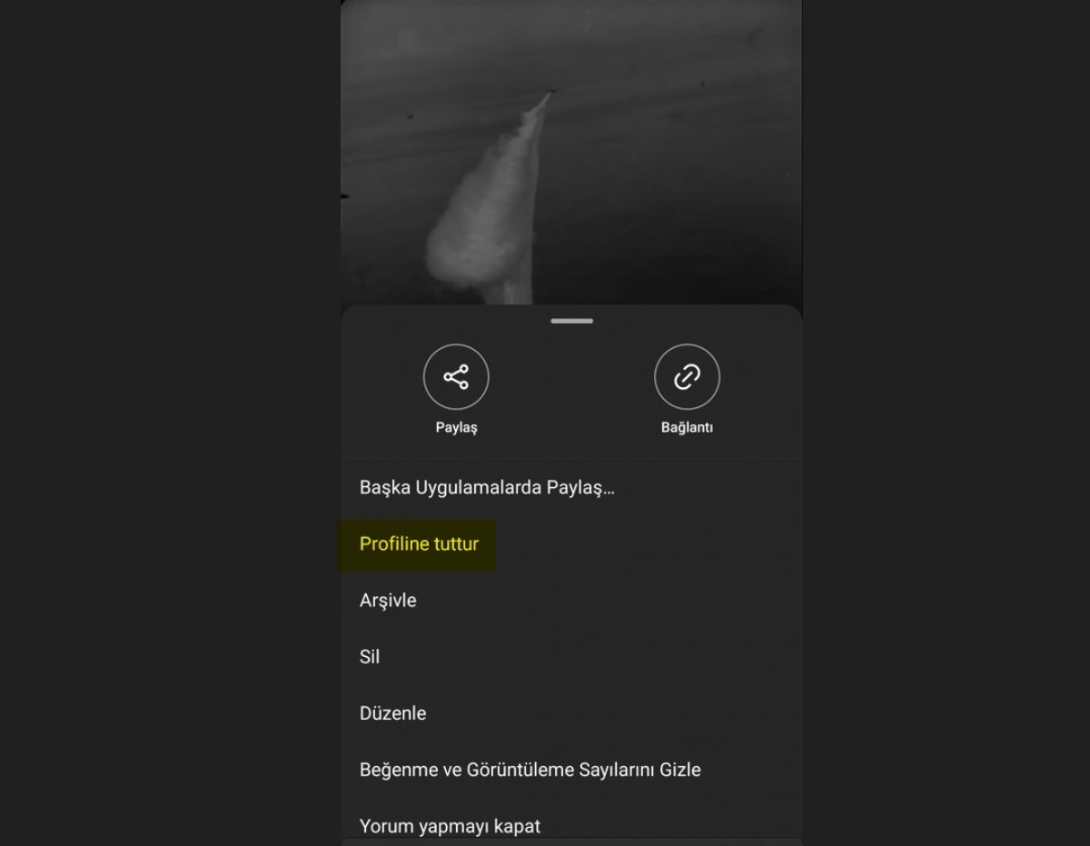 Gönderi sabitleme özelliği için ilk olarak profilinize girin ve sabitlemek istediğiniz gönderiyi açın. Daha sonra sağ üstteki üç noktaya dokunarak açılan menüden "Profiline tuttur" seçeneğine dokunun.