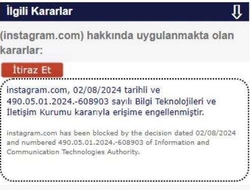 Kararın ardından Türkiye'den Instagram'a erişim sağlanamıyor.