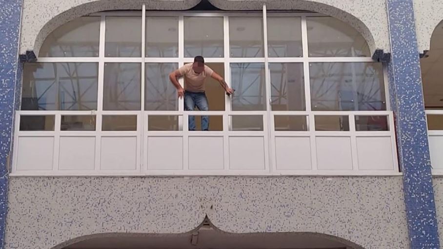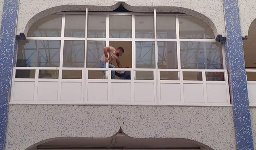 Bir türlü ikna olmayan vatandaşı bina içerisinde bulunan başka bir vatandaş kıvrak hareketiyle atlamak istediği yerden uzaklaştırmayı başardı.