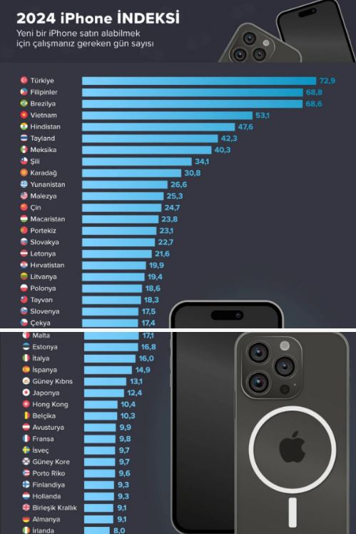 iPhone 16 almak için hangi ülkede kaç gün çalışmak gerekiyor!