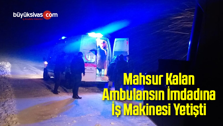 Sivas’ın Gürün ilçesinde kar ve tipi nedeniyle mahsur kalan ambulansın imdadına iş makinesi yetişti.