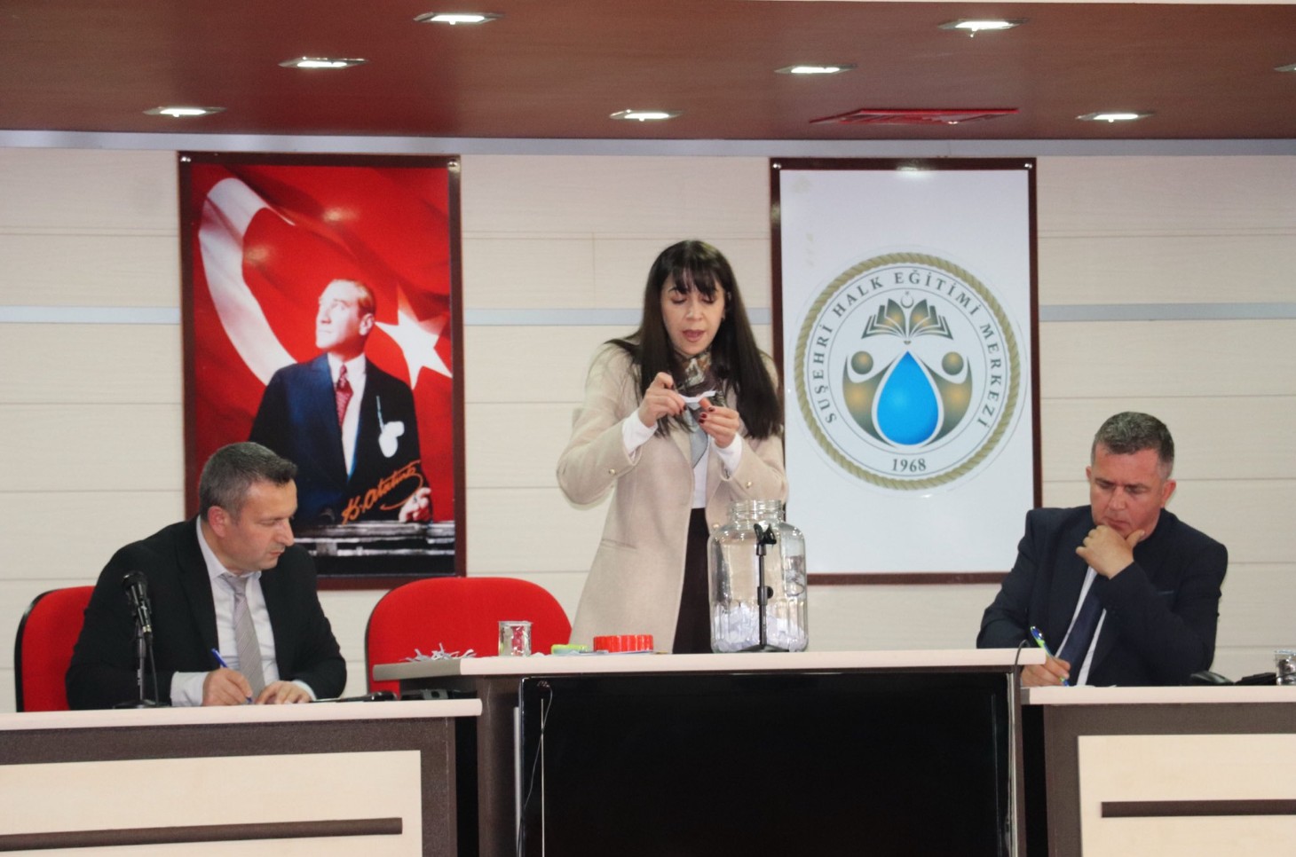 Suşehri Halk Eğitim Merkezi Konferans Salonu ile ASO Müdürlüğü Konferans Salonu’nda düzenlenen kura çekimi programına ilgili kurum yetkilileri ve vatandaşlar katıldı. İŞKUR İşyeri Uyum Programı kapsamında alımı yapılacak 36 katılımcı/kursiyerin belirlenmesi amacıyla gerçekleştirilen kura çekimi, noter huzurunda şeffaf bir şekilde yapıldı.
