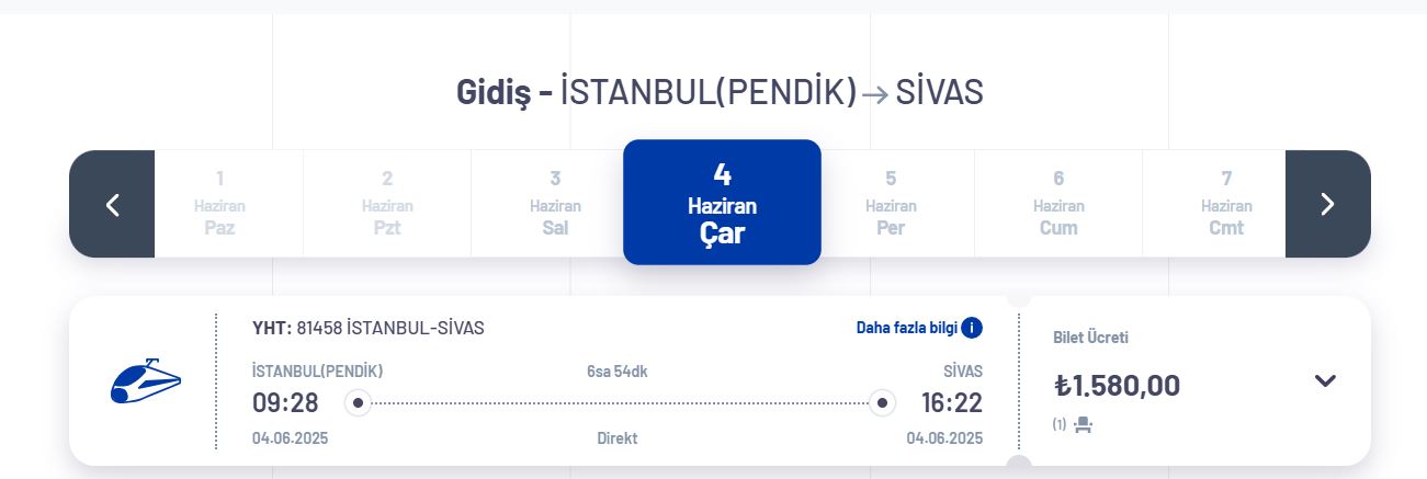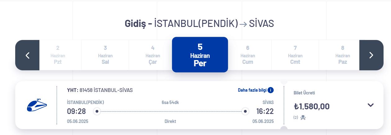Sivas'a Hızlı Tren ile gelmek isteyen vatandaşlar kişi başına 1.580-TL,
