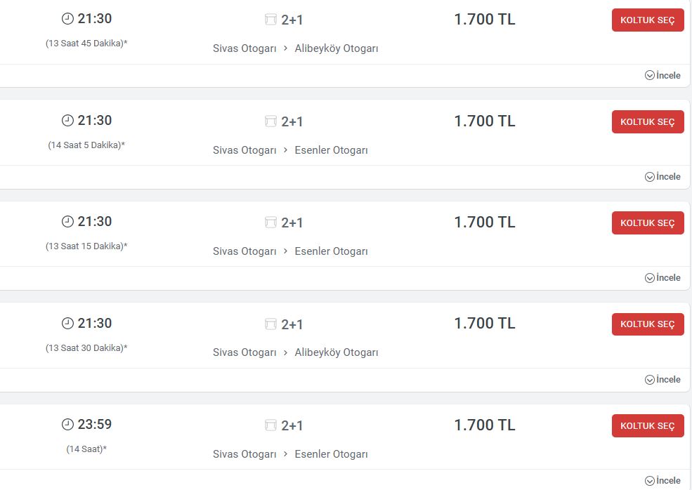 Sivas'a otobüs ile gelmek isteyen vatandaşlar kişi başına 1.700-TL,