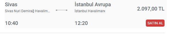 Sivas'a uçak ile gelmek isteyen vatandaşlar kişi başına 1.457-TL ödemek zorunda kalacak.