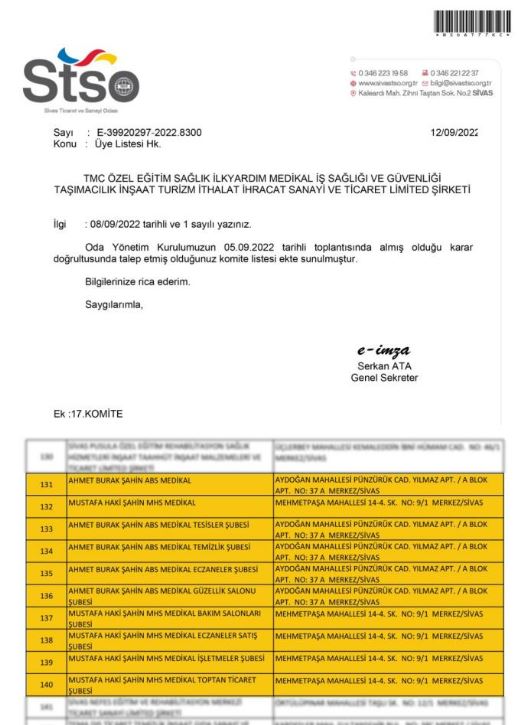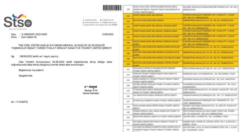 Erkoca yaptığı açıklamada bu kez 17. Komitede 4 şubesi bulunan iki yeni şirket açıldığına dikkat ekip, “Bu dönem 17. Komiteden yeniden meclis üyeliğine aday oldum. Seçim çalışmalarına başlamak için Sivas Ticaret ve Sanayi Odasına başvuru yaparak, seçmen listesini odamızda e-imzalı şekilde teslim aldık. Listeleri incelememiz neticesinde STSO’ da 2022 yılında 17. komitemize yeni iş şubeler açılarak odamıza yeni kayıtların olduğu anlaşılmıştır. Tarafımızca listeler detaylı bir şekilde incelenmiş ve dikkatimizi çeken bir husus olmuştur. Bu yeni açılan iş yerlerinden 2 üyemizin kaydı dikkatimizi çekti.