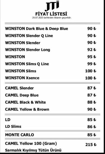 29 Temmuz 2025 tarihinden itibaren geçerli olmak üzere JTI sigara grubuna zam geldi.