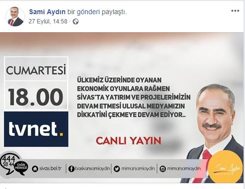 Sivas Belediye Başkanı Sami Aydın geçtiğimiz günlerde katıldığı bir televizyon programında "ben reklam yapsam nolacak yapmasam nolacak" diyerek enerjisinin tümünü çalışmaya harcadığını iddia etmişti. Aydın programda, ulusal kanallara program için dolar karşılığında çıkıldığından bahsetti. Kamuoyu adına soruyoruz... Son günlerde katıldığı programlara Aydın dolar ödediyse kaç dolar ödedi?