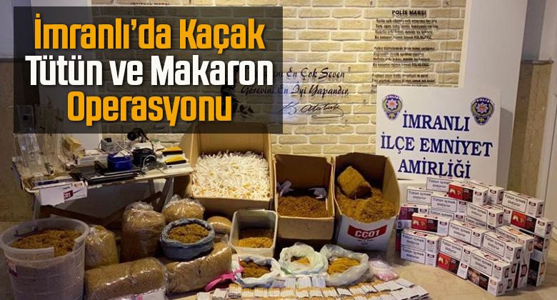 Sivas’ın İmranlı ilçesinde polis ekipleri, kaçakçılıkla mücadele kapsamında operasyonlarına hız kesmeden devam ediyor. Gerçekleştirilen operasyonda polis ekipleri tarafından bir şahsa ait ikamette, işyerinde ve araçta arama yapıldı. Aramalarda; 52 kilo 476 gram bandrolsüz açık kıyılmış tütün, Bin 420 adet dolu makaron, 17 Bin 878 adet boş makaron, 3 adet mekanik el sarma makinası, 310 adet daha önceden kullanılmış veya sahte makaron ve tütün bandrolü, 1 adet masaya sabitlenmiş halde elektrik düzenekli dinamolu sarma makinası ve 5 adet kıyılmış tütün haznesi ele geçirildi.
