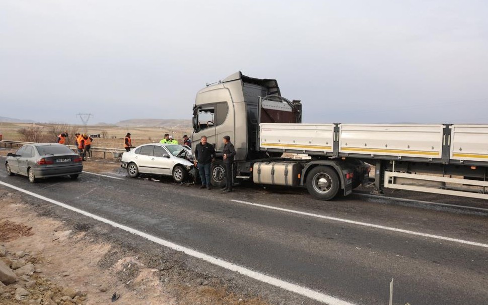 Karşı şeride geçen otomobil tırla kafa kafaya çarpıştı